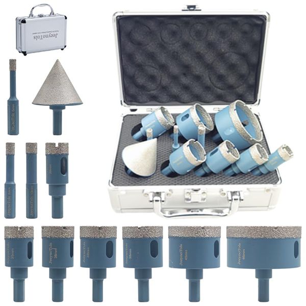 11pcs Diamond Hole Saw Drill Bit, Trangle Shank, Durable & Higher Quality 6/8/10/20/25/28/32/35/45/65 mm drill Bit & 50mm Beveling Chamfer Bit For Ceramic Tile Marble Porcelain