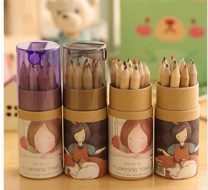 12 pcs sold in one kraft paper box floating girl multicolor pencils 12 colors rollers cap pencils color pencils drawing pencils coloring pencils color