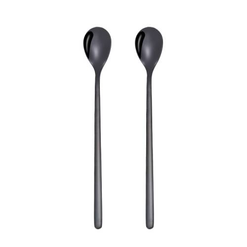 2 PCS Stainless Steel Spoon Creative Coffee Spoon Bar Ice Spoon Gold Plated Long Stirring Spoon, Style:Round Spoon