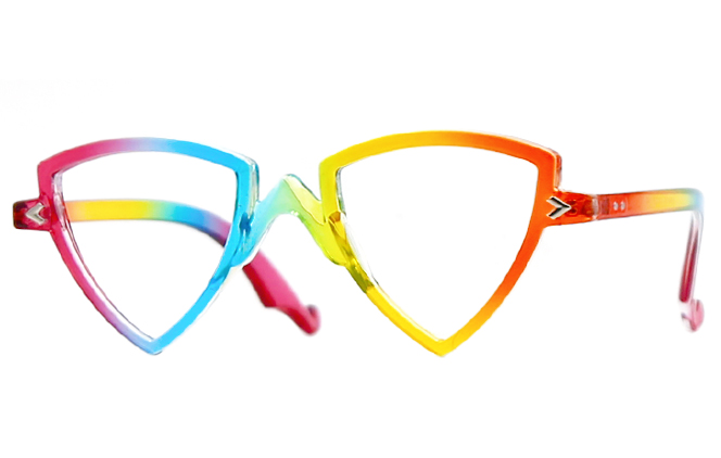 Prove that sweethearts have more fun in these heart-shaped cat-eyes. The middle-sized frame is made with lightweight, flexible TR90 plastic. It has a glossy finish and is available in rainbow.