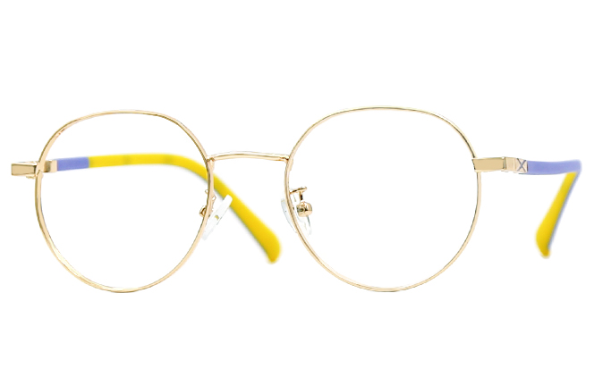 These charming round glasses not heavy, which makes them perfect for both school and playtime. The narrow metal frame features adjustable nose pads. It is available in gold and rose gold.