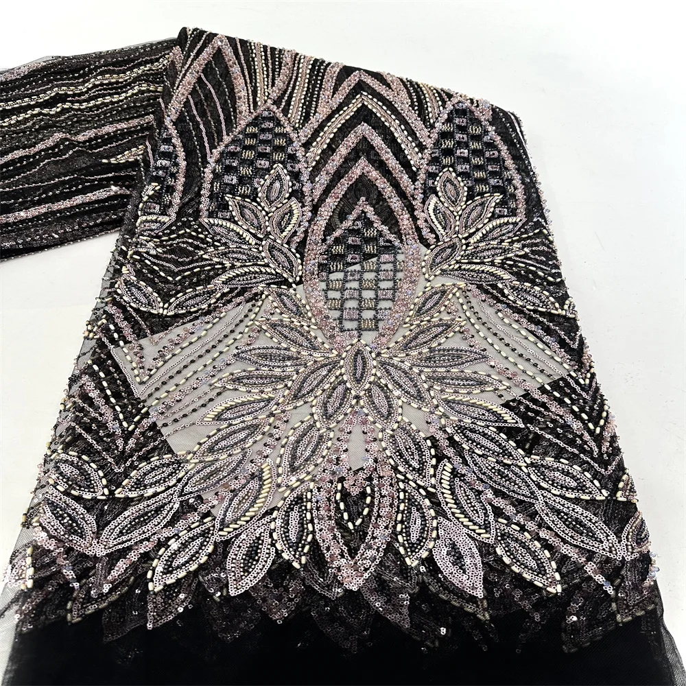 2024 High-end Heavy Beaded Fabric Latest African Luxury Sequins Groom Embroidery Laces French Tulle Lace Fabric for Dress Sewing