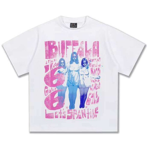 2025 American Thick Cotton Men's Short Sleeve T-Shirt Vintage 3D Cross-Cultural Print Portrait Contrast Base Summer