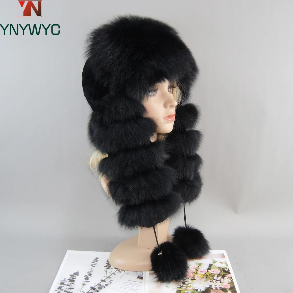 2025 Luxury Fashion Real Fur Hats Natural Fox Fur Russian Hat Ushanka Women Winter Warm Fluffy Popular Style Female Tail Cap