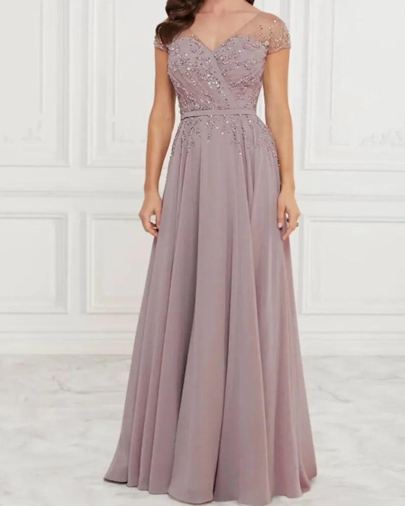 2025 Mother of the Bride Dress Elegant V Neck Pleats Beads Sequin Chiffon Guest Party Gowns Vestidos Para Madre De Novia