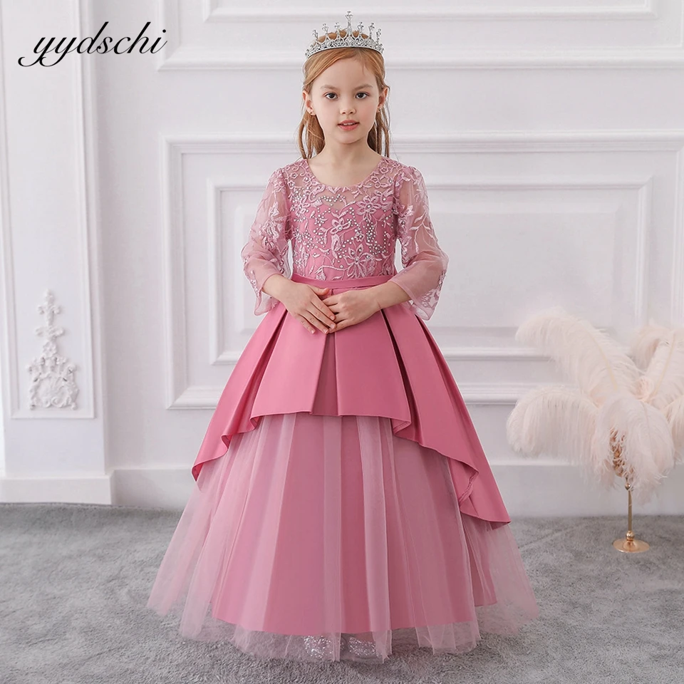 2025 Pink Bow Flower Girl Dresses Elegant Princess Satin Ball Gown For Kids Birthday Party Dress Simple Bow First Communion