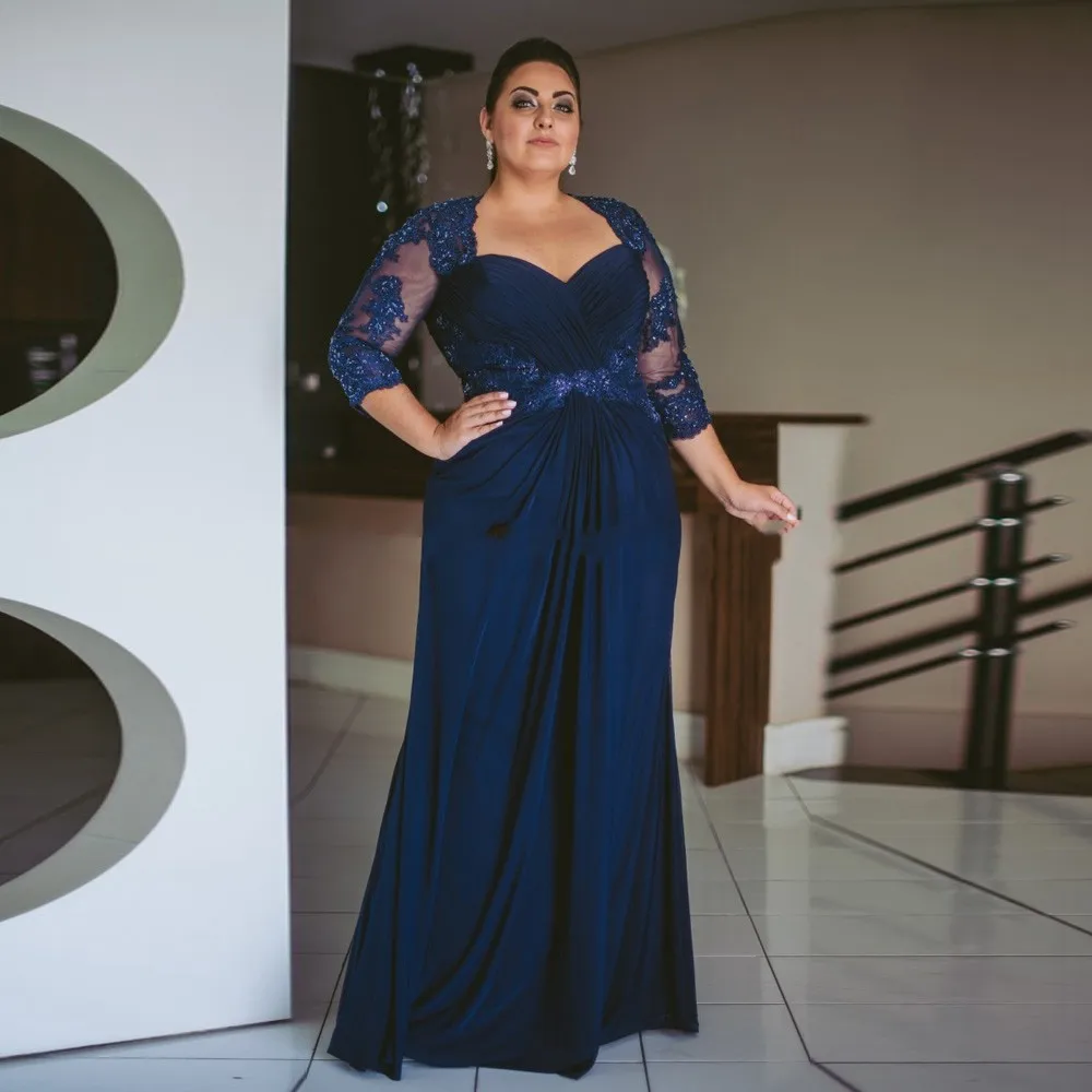 2025 Plus Size Navy Blue Mother of the Bride Dresses For Wedding Beads Lace Chiffon Floor Length Godmother Party Gowns