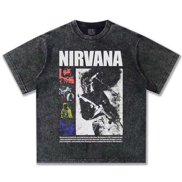 2025 Spring/Summer New Rock Heavy Washed Short Sleeve 100% Cotton American Street Style Long Loose T-Shirt
