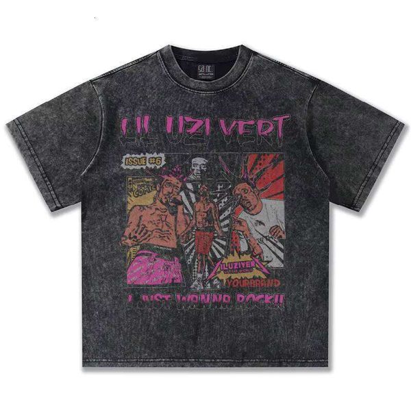2025 Summer Heavy Lil Uzi USA Direct Injection Print 100% Cotton Crossover Base Oversized Loose Men's T-Shirt