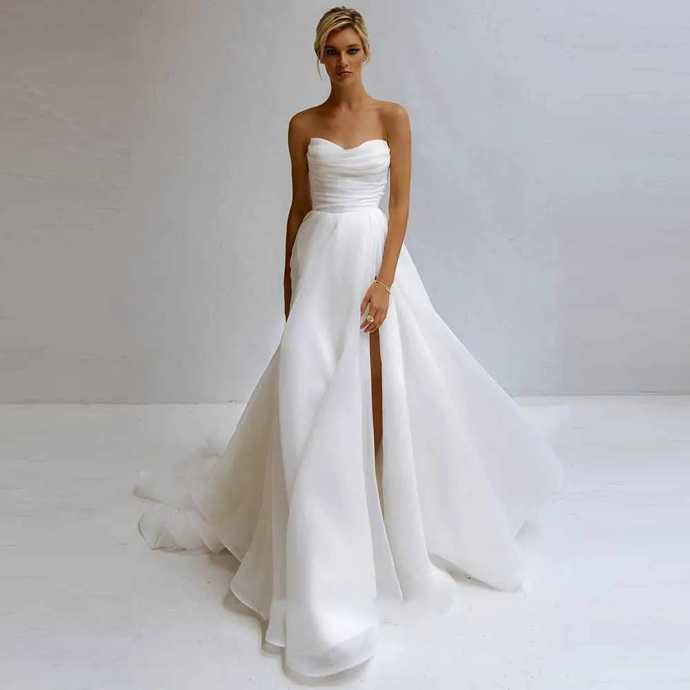 2025 Wedding Party Dresses Classy Tulle A-line Hall Wedding Dress White Sweetheart Pleat Ruched Front Split Tailing Wedding Gown