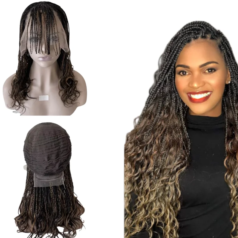 22 inches Burmese Virgin Human Hair Ombre Piano Color T1b/27 P #1b 180% Density Box Braids Lace Frontal Wig for Black Woman