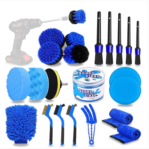 24-piece WRS-CS29 Car Wash Brush set Automotive interior slit cleaning drill brush head