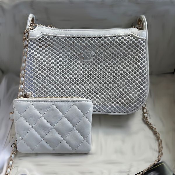 25s Fishing Net Gauze Bag Makeup Bag Designer Ladys Shoulder Bag Hollowed-Out Gold Hardware Metal Buckle Matelasse Chain Handbag Crossbody Sacoche Wallet Purse 22cm