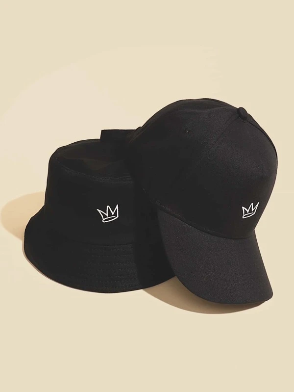 2pcs Men Crown Embroidery Baseball Cap & Bucket Hat