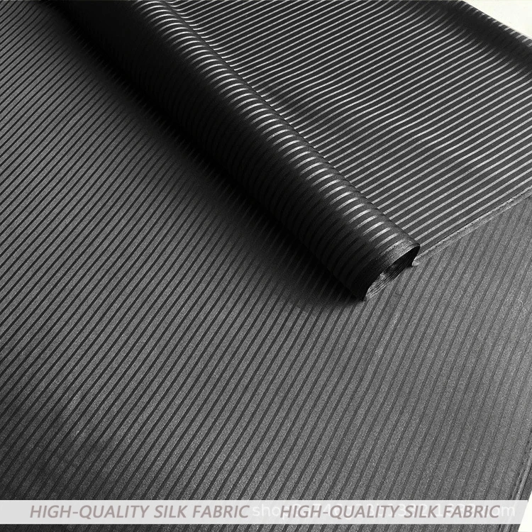 30Momme Striped Silk Soteil Fabric Black Jacquard Clothing Cheongsam DIY Coat and Dress