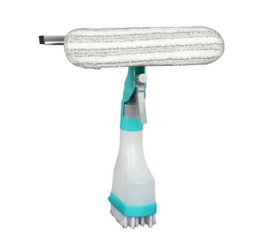 4 in 1 Multi-function double-sided glass cleaning brush with scraper strip sponge scrub floor brush water spray bottle sassafras window