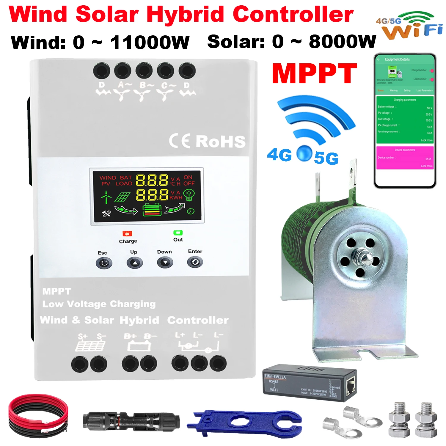 4000W 5KW Hybrid Wind Solar Controller MPPT Auto Match 12V 24V 48V Regulator Optional WIFI Android App For Hybrid Power System