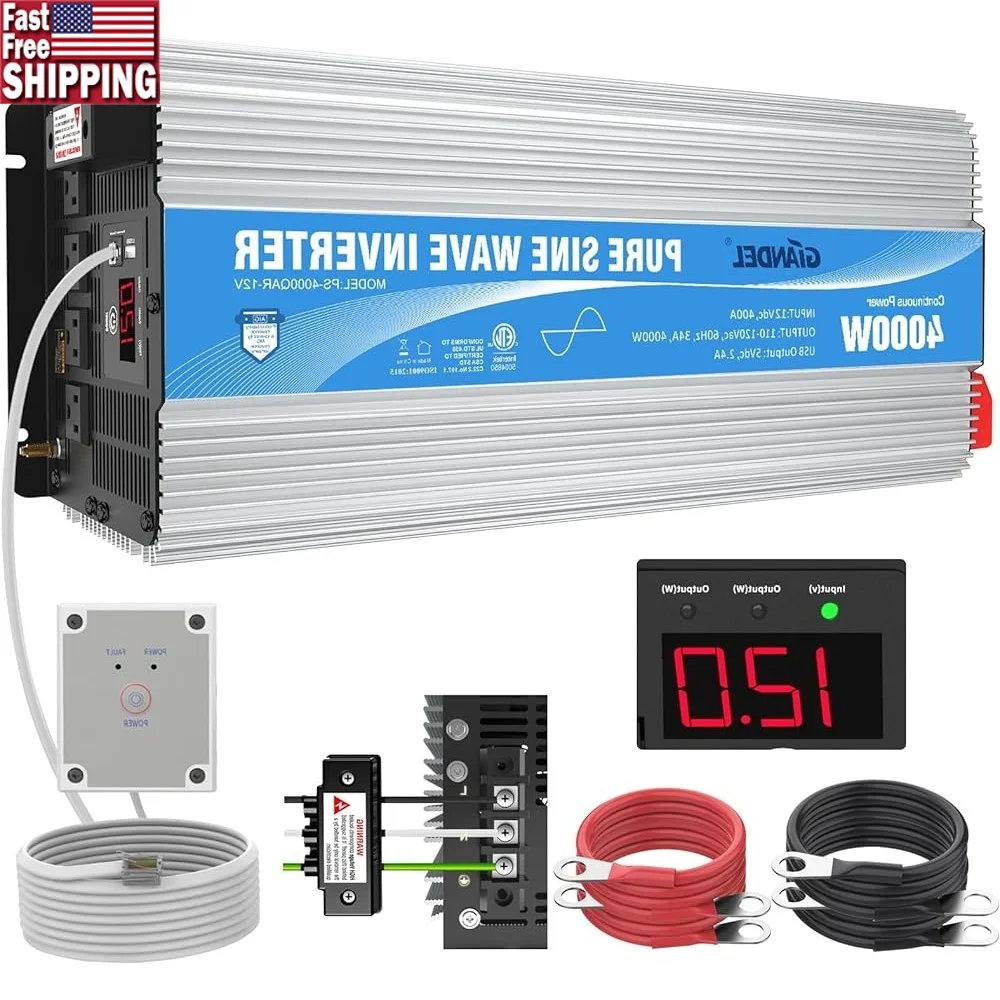 4000W Pure Sine Wave Inverter 8000W Peak Power DC12V AC120V 40A Terminal USB Marine Truck Solar System