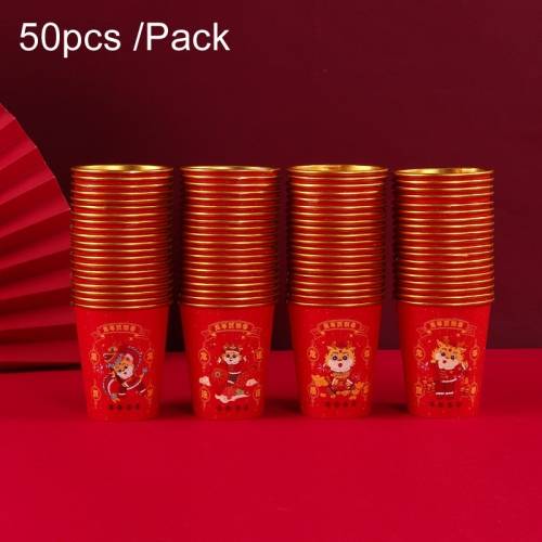 50pcs /Pack Dragon Year Golden Paper Cup Golden Foil Spring Festival Disposable Paper Cup(Patterns Randomly Delivery)