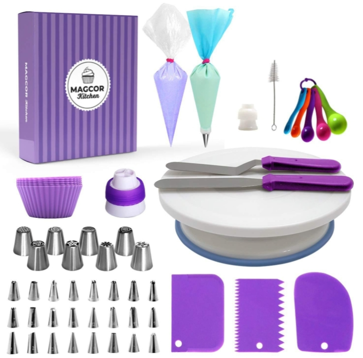 60 Piece Cake Turntable Set, Mounting Table, Framing Tips, Silicone Pouches, Baking DIY Combination