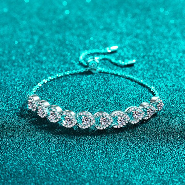 925 Sterling Silver Adjustable Heart Design Bracelet, Platinum Plated, Luxury CZ Crystal, Dainty and Elegant Jewelry for Women