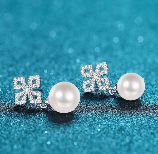 925 Sterling Silver Earrings for Women, 31-Point Moissanite Freshwater Pearl Stud and Drop Earrings, Fashionable Fragmented Stone Design, High-End Jewelry