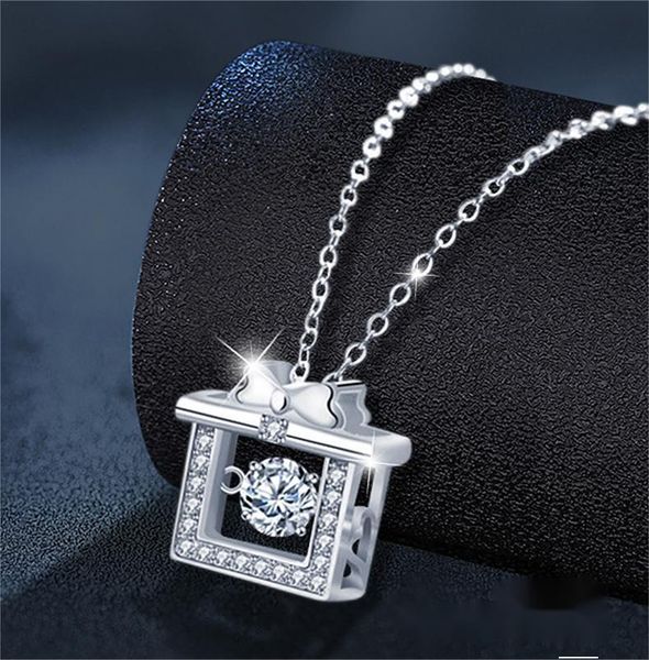 925 Sterling Silver Moissanite Gift Box Pendant Necklace | Elegant Bow Design Crystal Jewelry for Women Holiday Present