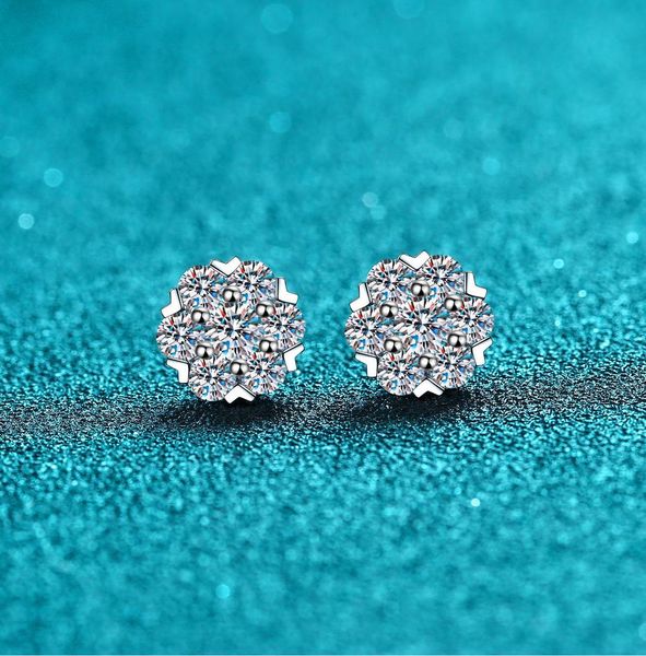 925 Sterling Silver Snowflake Moissanite Earrings, 48ct & 160ct Moissanite Stones, Elegant and Timeless Design for Women, Perfect for All Occasions