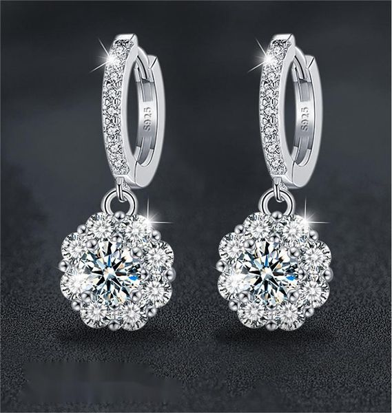 925 Sterling Silver Sunflower Moissanite Earrings – Classic 4-Prong Setting, Dazzling 3EX Cut, Rhodium Plated, Hypoallergenic, Gift for Her
