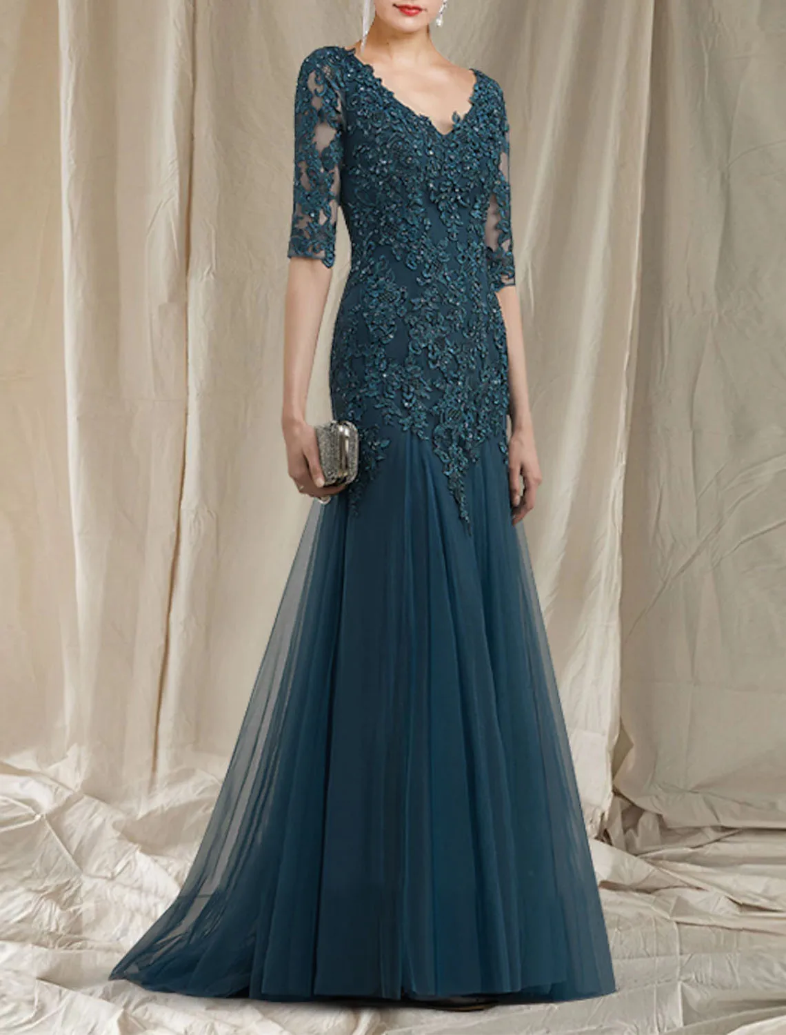 A-Line Elegant Mother of the Bride Dress Wedding Party Evening Gown V-Neck Half Sleeve Ruffles Appliques 2025 Free Customized