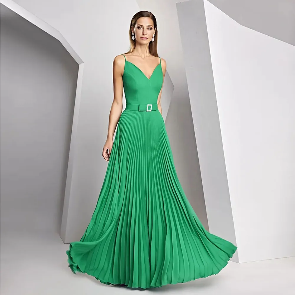 A Line Wedding Guest Dress Green Spaghetti Straps Formal Gowns for Women 2024 V Neck Trumpet Evening Dress