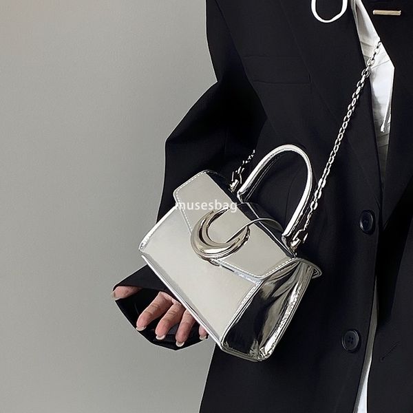 Advanced Moon Lock Buckle Bag for Women's New Silver Square Lacquer Leather Bag Handbag Chain Single Shoulder Crossbody Bag