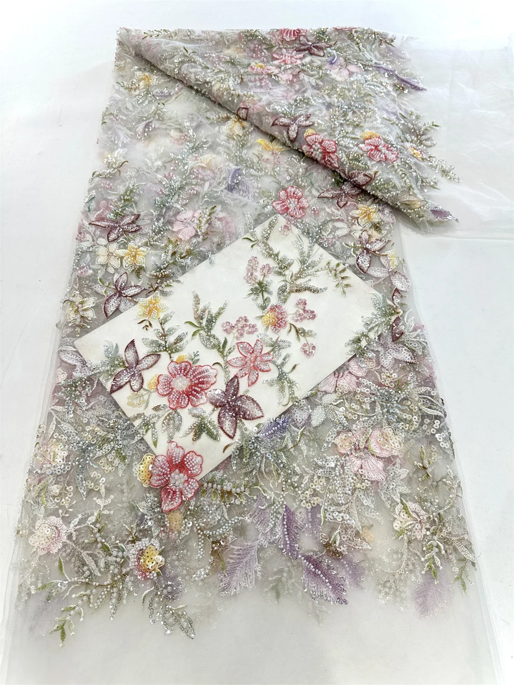 Item: African embroidery Beaded Lace Net Fabric,Nigerian Wedding Material,Luxury Fabrics for Dress Sewing, High Quality,5 Yards,2025