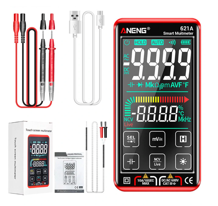 ANENG 621A 9999 Counts Auto Range Full-screen Touch Smart Digital Multimeter Rechargeable DC/AC Voltage Current Tester Meter