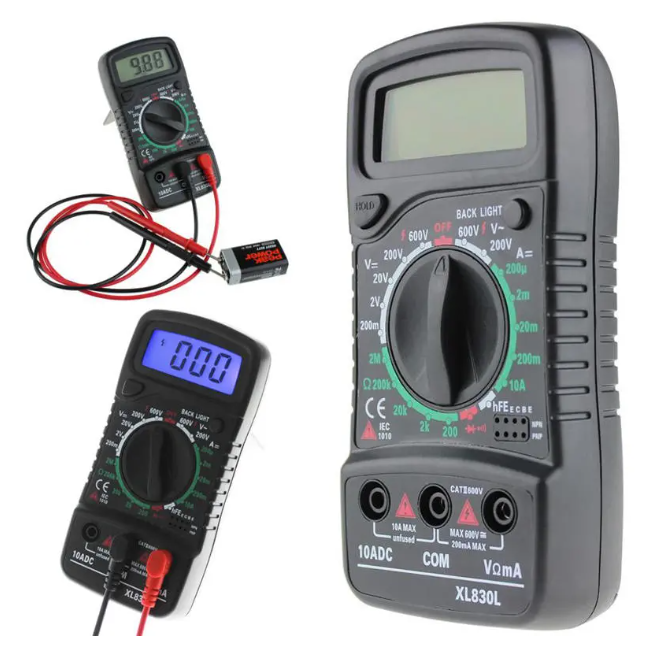 Description: ANENG XL830L Digital LCD Multi-Meter – Precision Measurement for Your Needs Unleash the Power of Accurate Measurements with the ANENG XL830L Digital Multi-Meter! This versatile and reliable multi-meter is designed for professionals and enthusiasts alike, providing precise and dependable readings across a wide range of electrical applications. Equipped with advanced digital LCD technology and comprehensive features, the ANENG XL830L offers unparalleled accuracy and ease of use, making it an invaluable tool for troubleshooting, diagnostics, and measurement. Key Features & Specifications: High Accuracy: Featuring an accuracy of ±0.5% and a resolution of 0.01V, the XL830L delivers precise readings across a broad voltage range. Digital LCD Display: A crystal-clear, bright LCD screen provides easy-to-read values, eliminating the need for complicated dials or meters. The screen is designed for optimal visibility in various lighting conditions. Voltage Measurement: Accurately measures AC and DC voltages, from 0V to 1000V DC. Provides a stable voltage reading with minimal fluctuation. Current Measurement: Capable of measuring current up to 10A, ensuring you can quickly detect and analyze electrical circuits. The accurate current measurement is crucial for safety and troubleshooting. Ammeter Function: Provides a direct and precise Ammeter reading, essential for calculating power consumption and understanding electrical flow. Ohm Measurement: Offers a precise Ohm (resistance) measurement with a resolution of 0.001 Ohm. This is vital for identifying faulty components and ensuring proper circuit operation. Metrology Mode: Allows for the measurement of both voltage and current simultaneously, streamlining your diagnostic process. Digital Display Modes: Supports both standard voltage and current display modes for convenient use. Wide Input Range: Supports a wide range of input voltages, covering typical household and industrial electrical systems. Durable Construction: Built with high-quality materials, the XL830L is designed to withstand the demands of rigorous use. Its robust construction ensures long-term reliability. Easy to Use: Simple and intuitive interface makes it easy to operate, even for beginners. The LCD display is easily navigable. Compact Design: Its compact size makes it convenient to transport and store, ideal for both home and professional settings. Stable and Reliable: The multi-meter is designed for stable performance and minimal error, providing consistent and accurate measurements. Applications: Troubleshooting Electrical Circuits: Quickly diagnose and resolve issues in homes, businesses, and industrial facilities. Electrical Testing & Quality Control: Ensure electrical components meet specifications and standards. Automotive Diagnostics: Assess vehicle electrical systems for proper operation. DIY & Hobby Projects: Experiment with electronics and electrical projects safely and effectively. Safety Monitoring: Monitor electrical systems for potential hazards and ensure compliance with safety regulations. Invest in a reliable and accurate multi-meter – the ANENG XL830L is your dependable partner for all your electrical measurement needs. Order yours today and experience the difference!
