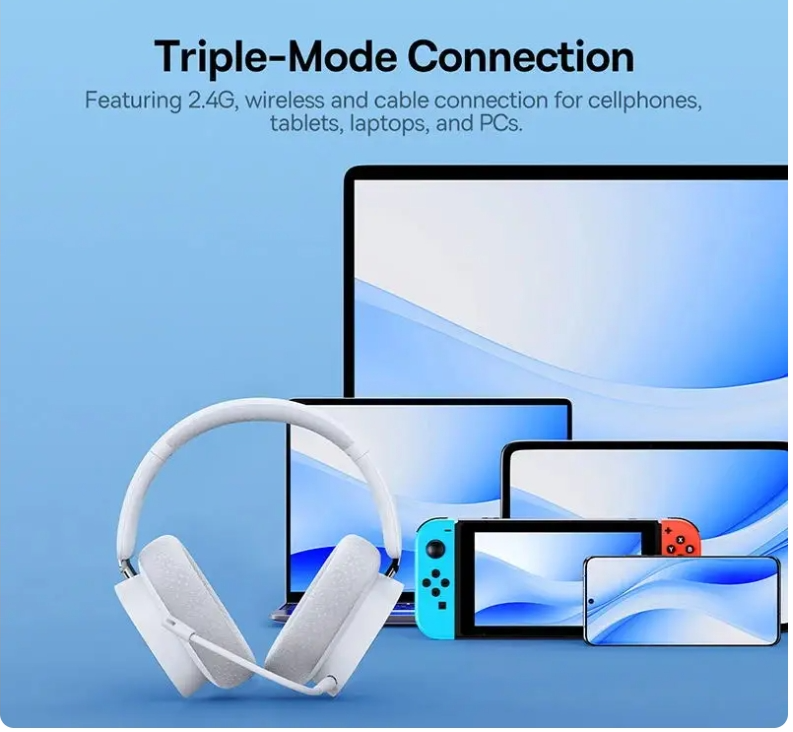 Baseus GH02 Gaming Wireless Headphone with Mic Over-Ear Headphones Bluetooth 5.3 40mm Driver 2.4G/Wireless/Cable RGB Headsets