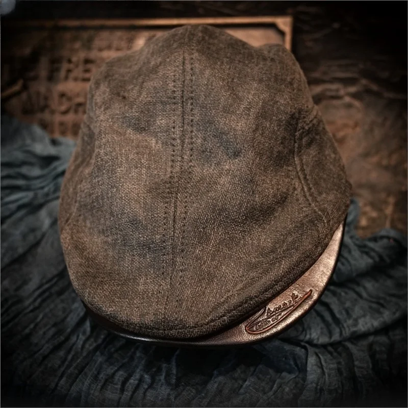 Beret for men with vintage handmade peaked cap mouth short brim forward women horseskin