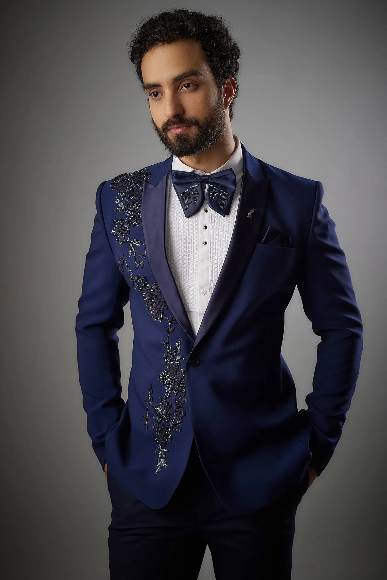 Bespoke 2 Pcs Men Suits Blazer Pants Regular Fit Peak Lapel One Button Appliques Beading Stylish Formal Business Suits Customed
