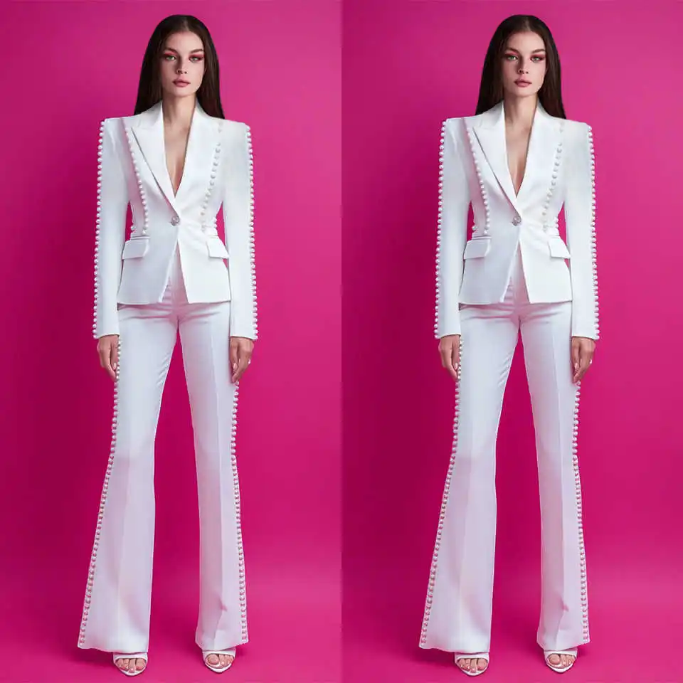 Big Pearls Women Pants Sets Customized Mother Of The Bride Suits Prom Evening Guest Formal Wear Photography 2 Pieces