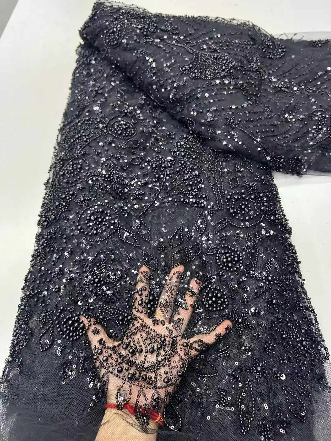 Item: Black African Beads Groom Tulle lace Fabric 2025 High Quality Sequins Embroidery French Tulle Laces For Nigeiran Party Dress