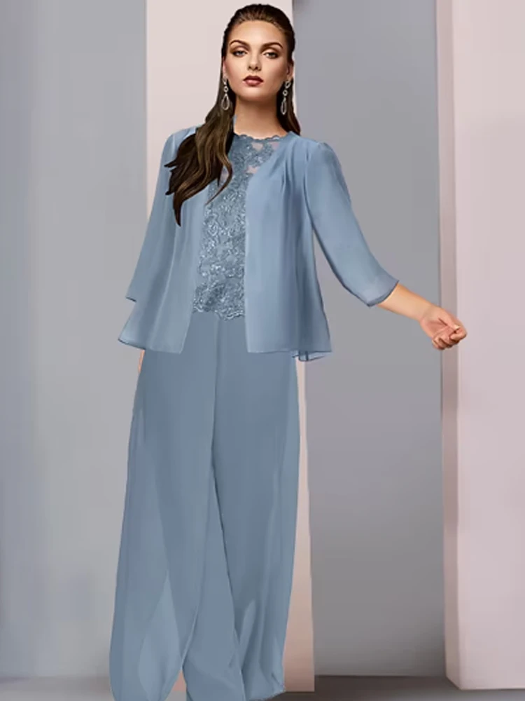 Blue Casual Mother of the Bride Dress Elegant Floor-Length Lace Chiffon Half-Sleeve Wide-Waist Floral Jacket customized