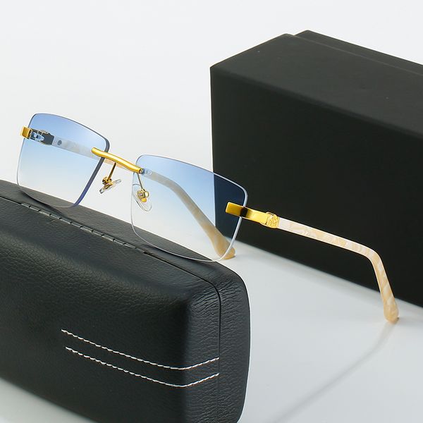 Blue Pilot Oversized Sunglasses Designer Woman Men Rimless Summer Silver Mirror Sun Glasses Metal Luxury Brand Eyewear Shades for Women Sexy Buff Eyeglasses Oculos