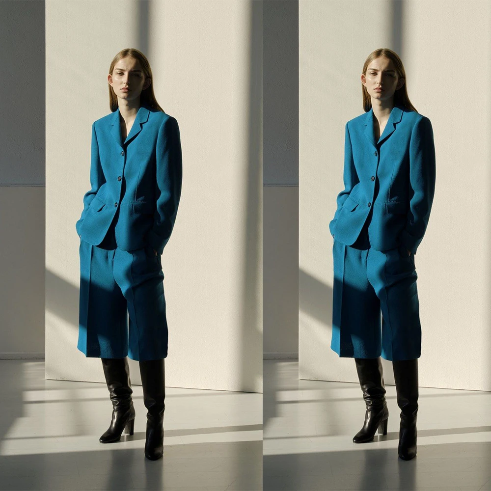 Blue Tweed Mother Of The Bride Pant Suits Winter Warm Business Suits Women Tuxedos Blazer For Wedding Party (Jacket+Pants)