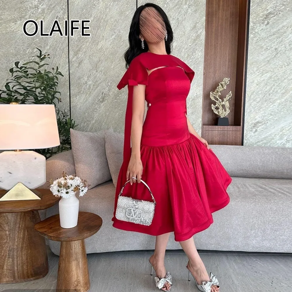 Boat Collar Satin Solid Simple Evening Bridesmaid Dres Backless Tea-Lengtth A-line Evening Arab Gown with Jackets Customized
