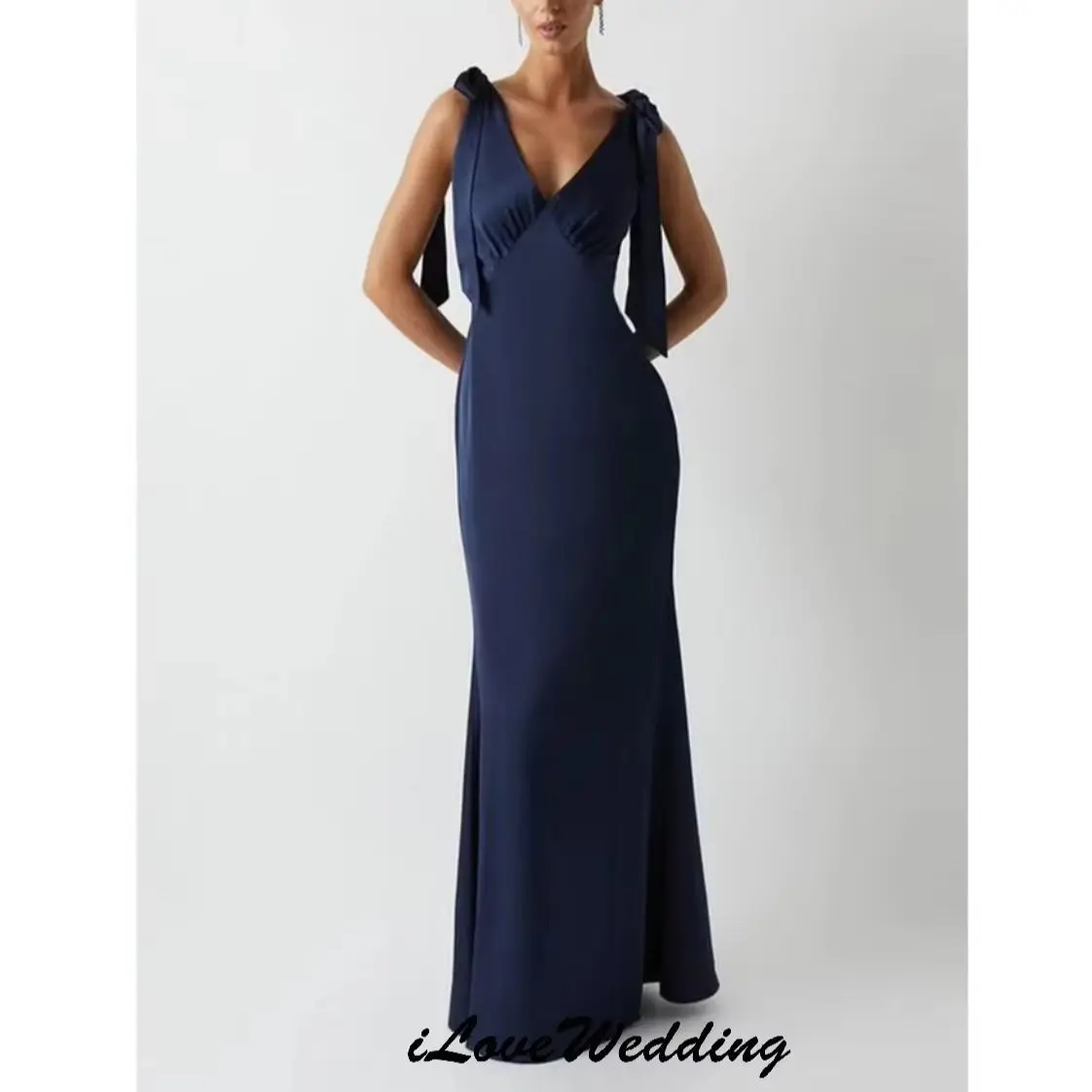 Bridesmaid Dresses 2025 Navy Blue Wedding Party Dress For Woman Satin V-Neck Sexy Evening Dresses Open Back Ruched Customized