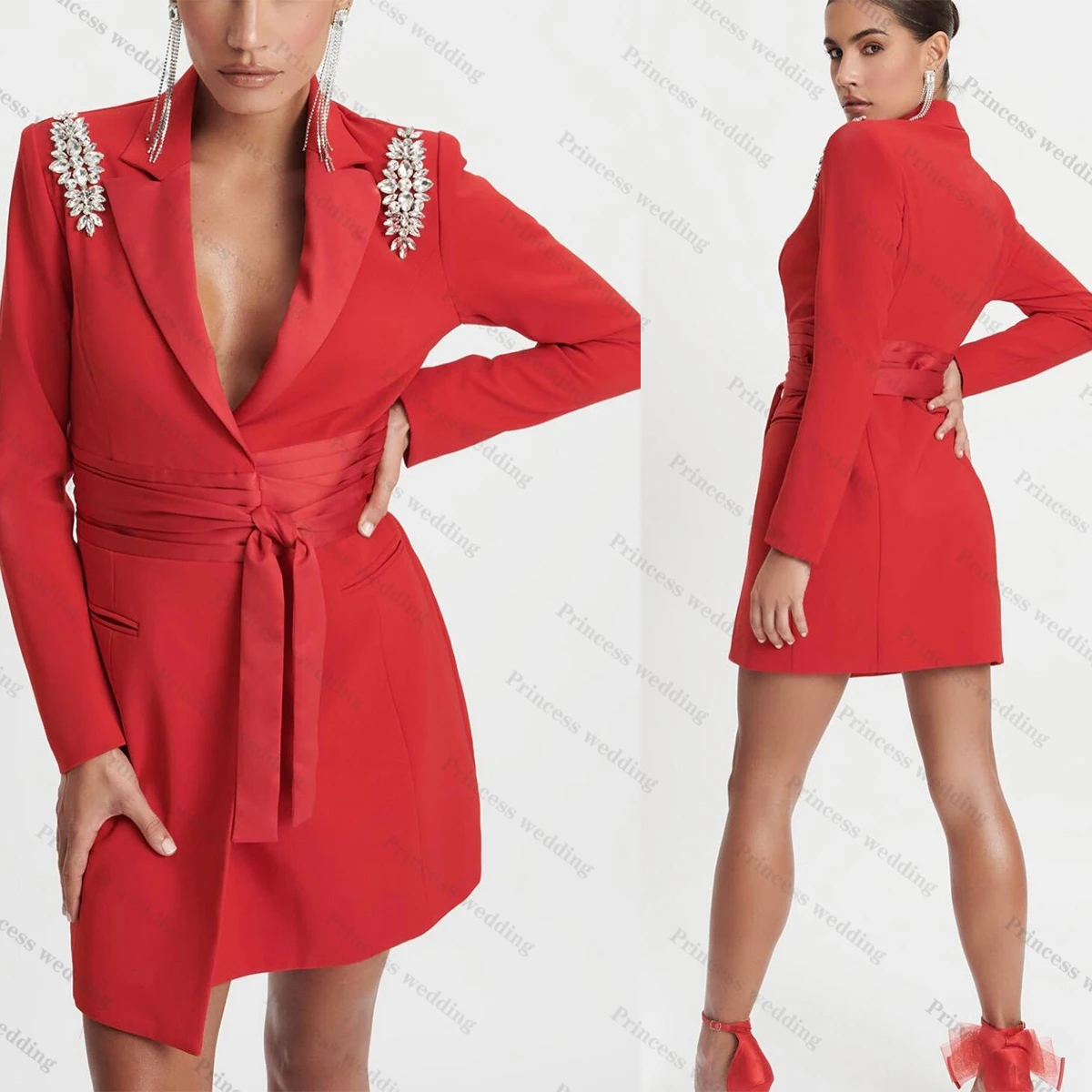 Bright Red Women Blazer Jacket Crystal Beading Girls Custom Made Slim Fit Evening Party Formal Birthday Work Wear One Piece