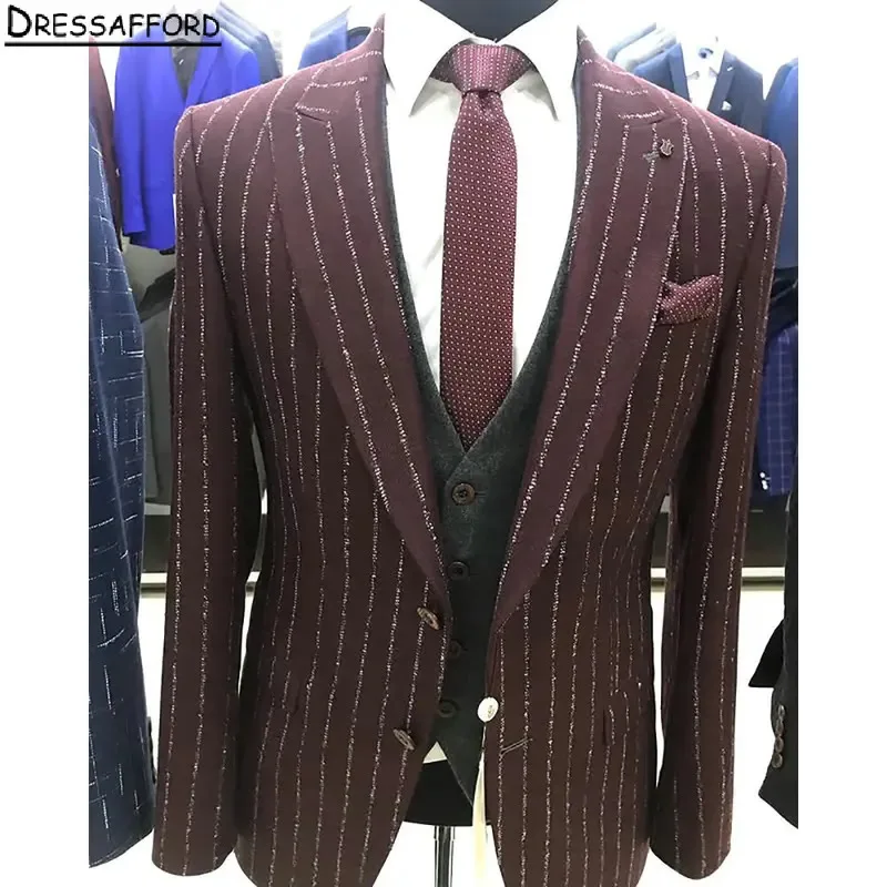 Burgundy Crystal Stripe Men Suits For Wedding Blue Crystal Groom Tuxedos 2 Pieces Jacket Pants Prom Blazers Customized