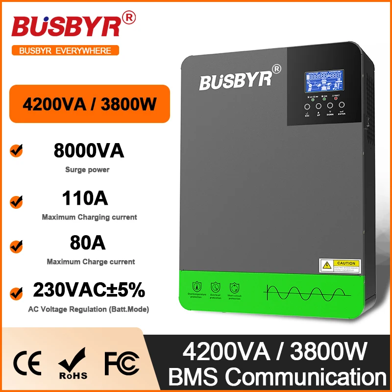 BUSBYR 4.2KW Hybrid Solar Inverter 24V Photovoltaic Hybrid Inverter Max PV 500V Build in MPPT 110A 80A Charger Solar Inverter