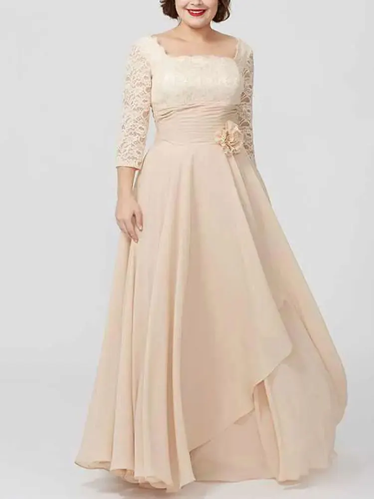 Champagne Lace Elegant Mother Of The Bride Dresses Plus Size Evening Gowns A Line Long Sleeve Wedding Guest Dresses