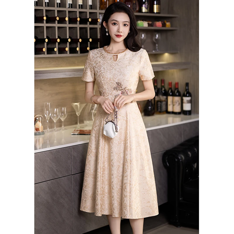 Champagne Satin Mother Of The Groom Dresses Elegant Modest Round Neck A-Line Floor-Length Women Wedding Party Gowns